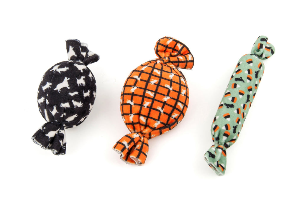 Watch them trick-or-treat happily carrying this crinkly, fun jack-o-lantern basket from room to room collecting all three pieces of squeaker-filled candy.