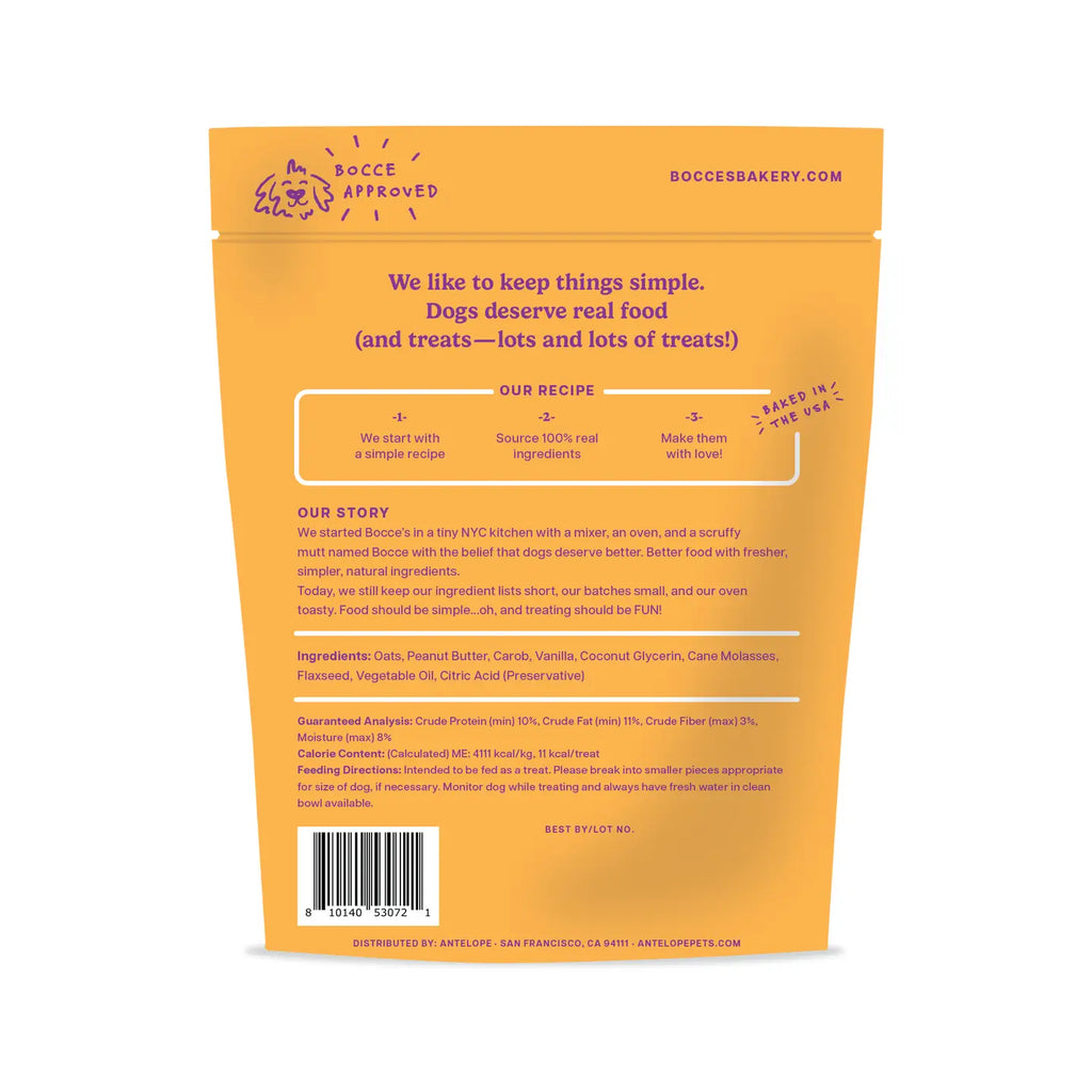 Ingredients: Oats, Peanut Butter, Carob, Vanilla, Coconut Glycerin, Cane Molasses, Flaxseed, Vegetable Oil, Citric Acid (Preservative)