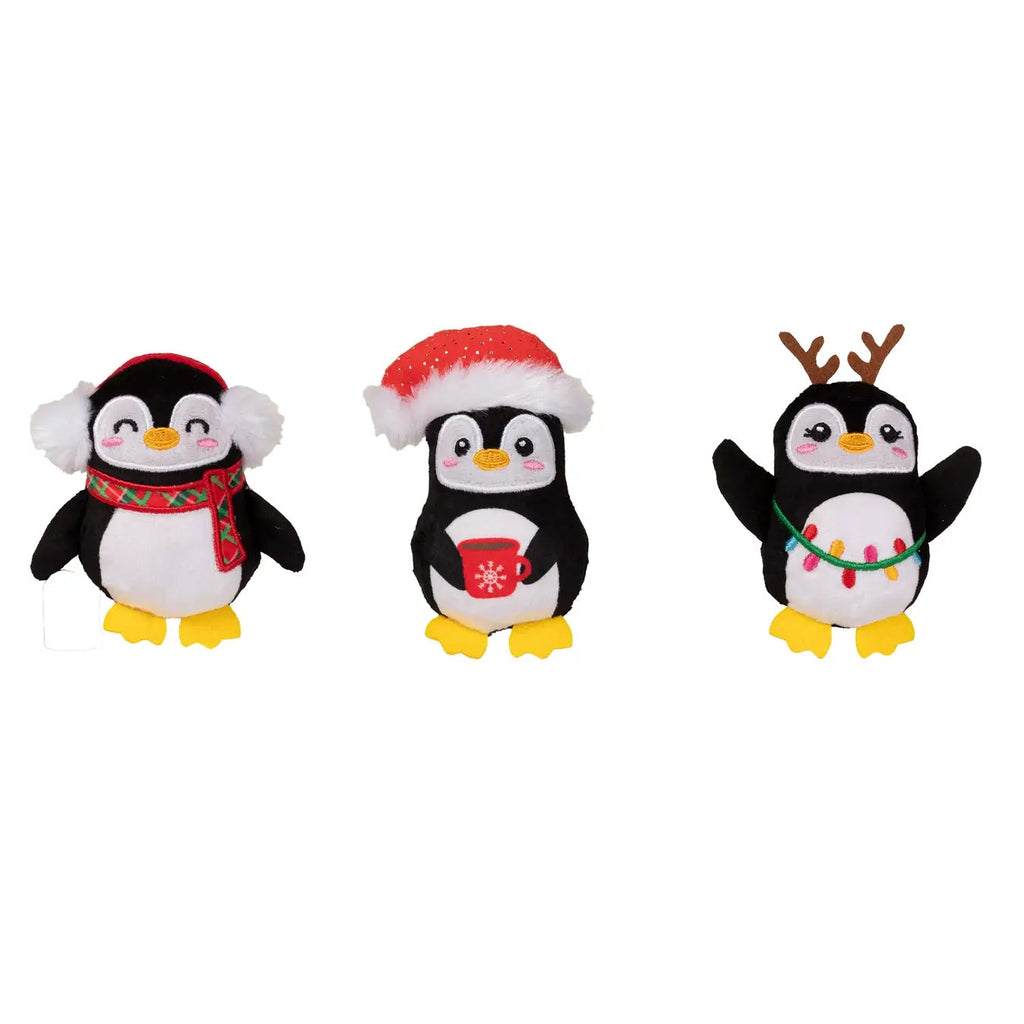 These happy, festive penguins are perfect for the pup that likes to play all day. Made with a loud squeaker and crazy crinkle paper in each toy, this trio is sure to keep it real cozy.
